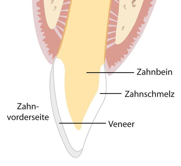Die Behandlung gliedert sich meist in mehrere Schritte. Zunächst werden die betreffenden Zähne lokal betäubt und etwa 0,3 bis 0,7 Millimeter der Oberfläche abgeschliffen.
